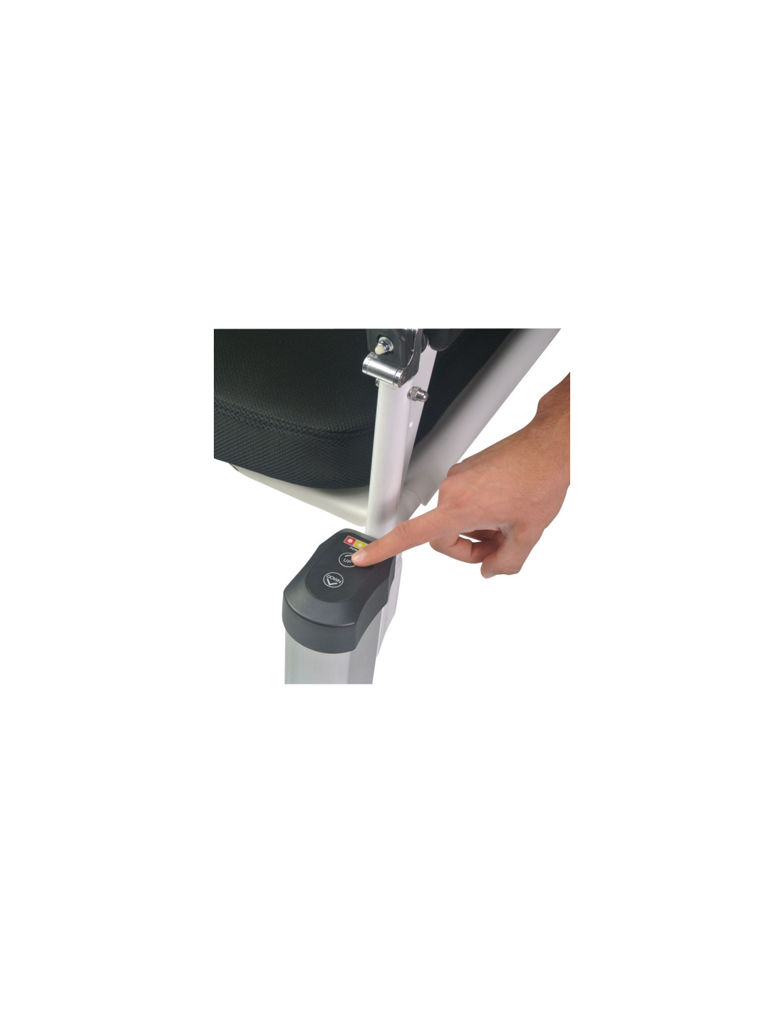Basta con colocar el asiento de la moovy a la altura de las nalgas del paciente y ajustar la altura mediante cilindros eléctricos. El asiento se puede subir y bajar directamente en la silla (sin mando a distancia). A continuación, el asiento debe abrirse, cerrarse alrededor del paciente y asegurarse con el doble sistema de seguridad.