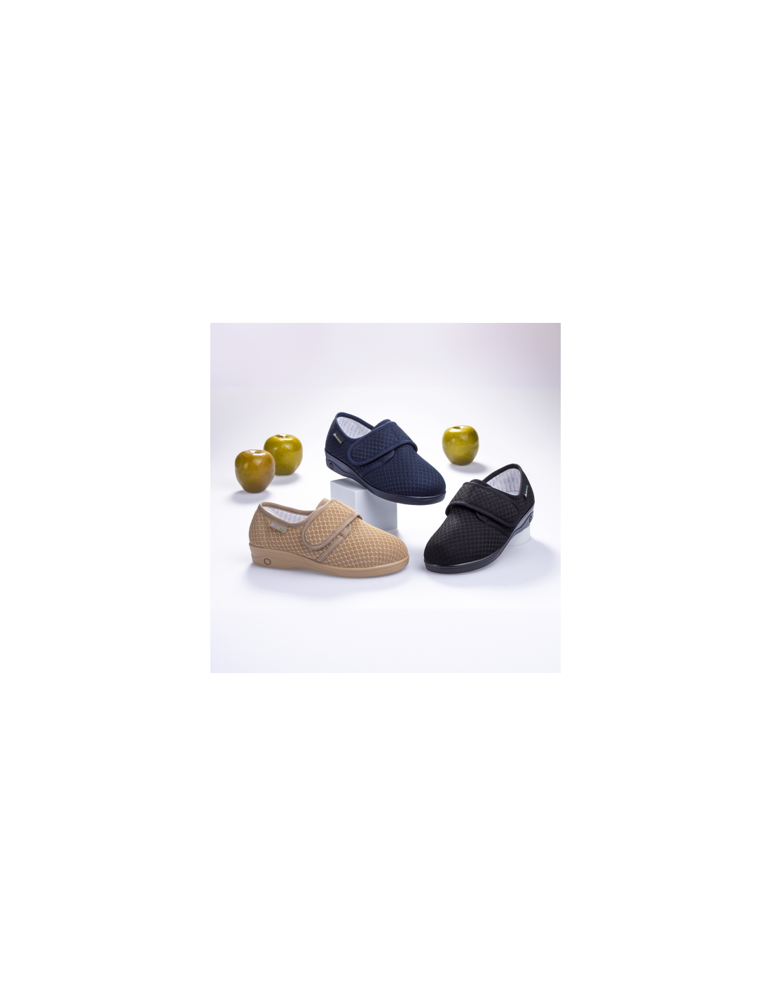 El calzado 203 esta diseñado para personas con deformidades leves en los dedos (garra y martillo), vendajes en los dedos y afecciones dermatológicas del pie. Cierre ajustable con velcro para una perfecta adaptación al tamaño del empeine, ancho de puntera dando una gran amplitud y plantilla extraíble.
