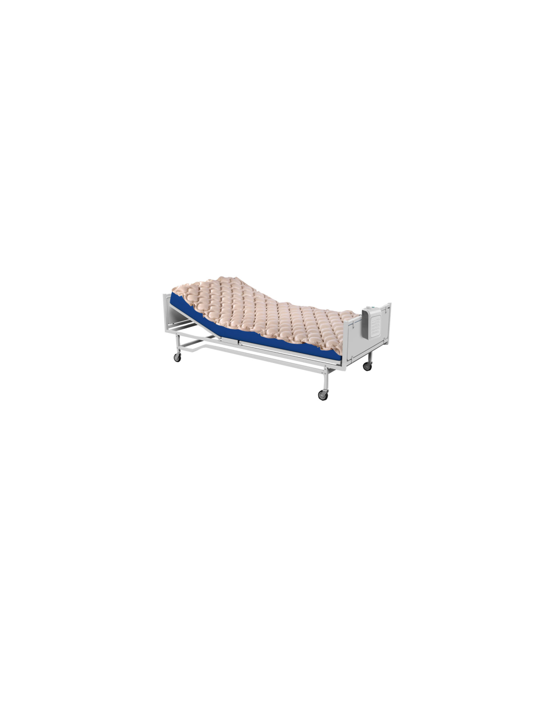 Colchón de celdas de aire con compresor especialmente para prevenir y tratar úlceras por presión (escaras), en personas que pasan mucho tiempo acostadas, distribuyendo la presión del cuerpo y mejorando la circulación sanguínea mediante el inflado y desinflado alterno de sus celdas de aire.