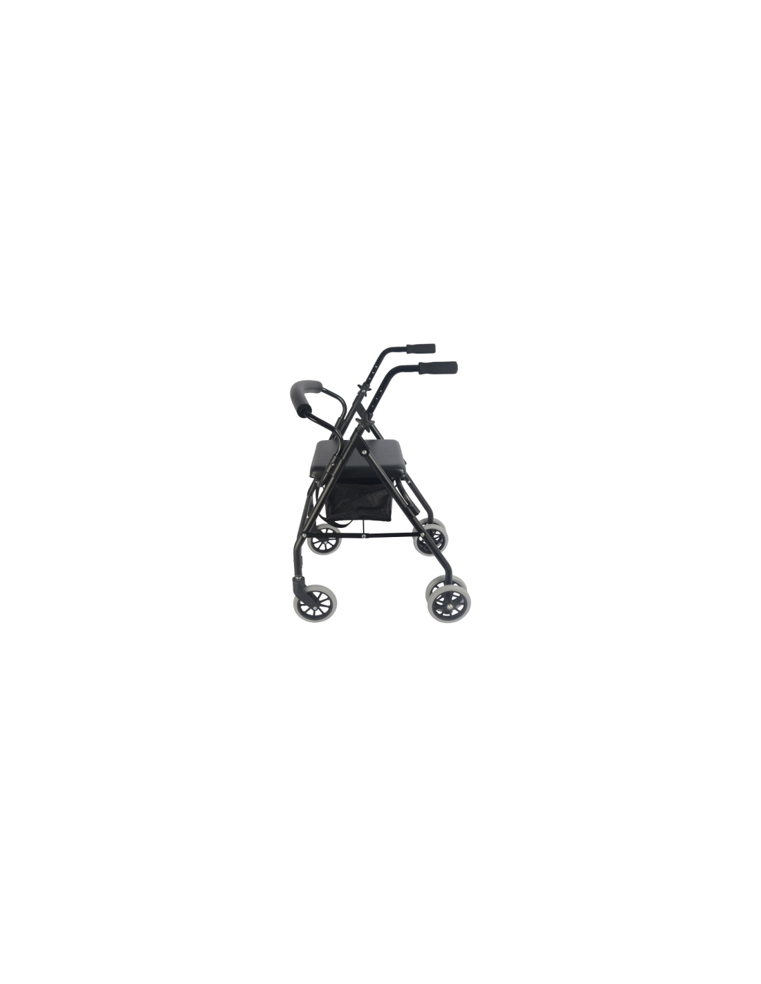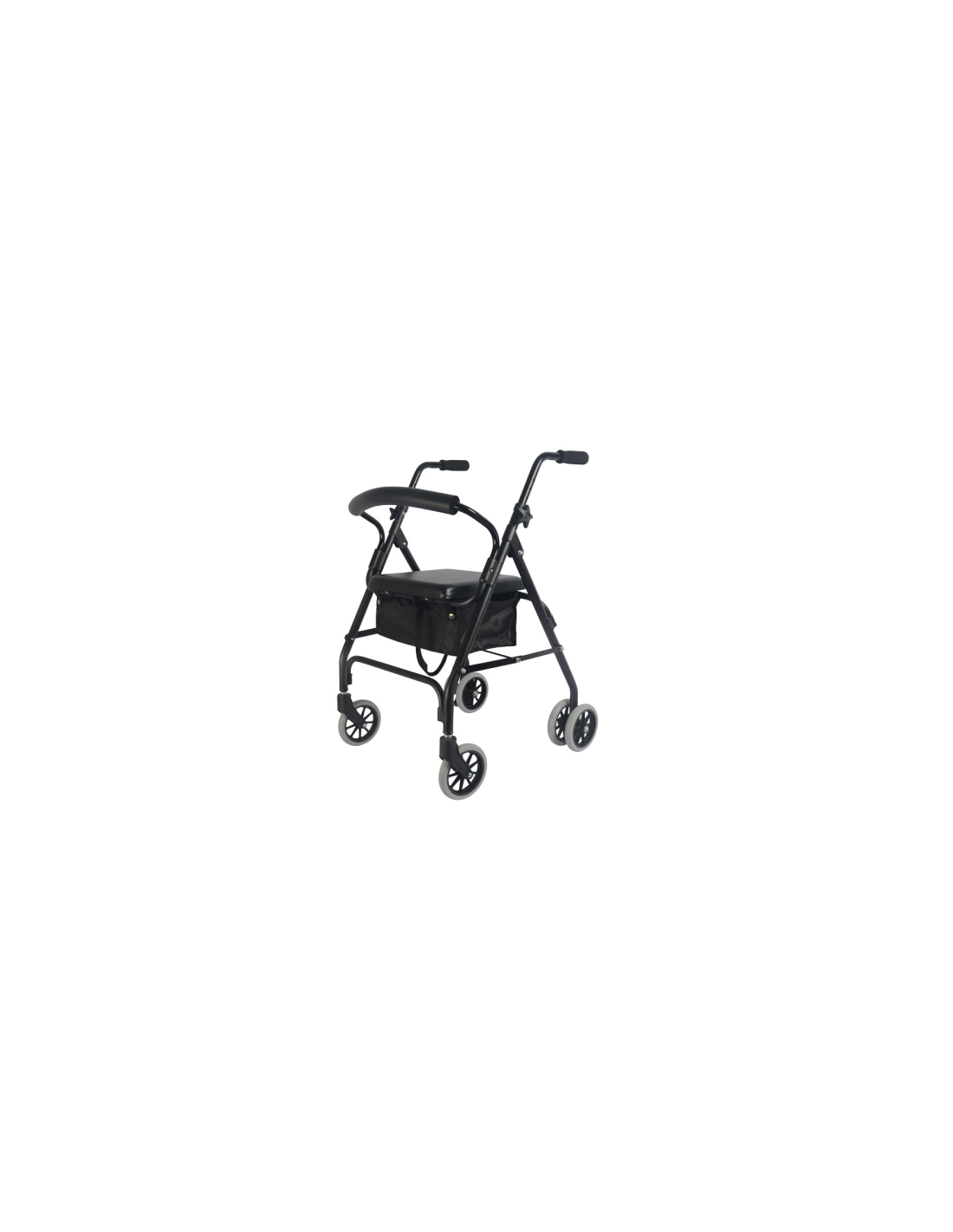 Frena cuando el usuario presiona o empuja las empuñaduras. Andador plegable con 6 ruedas de 15 cm y cómodo asiento. Se suministra con una bolsa extraíble debajo del asiento.