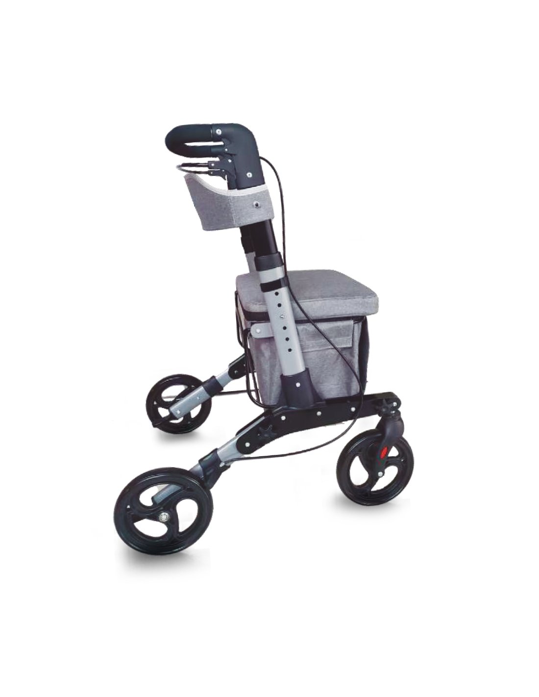 Cuenta con una cesta de gran tamaño con una capacidad de carga de 24 litros. Dispone de freno de servicio y freno de bloqueo para sentarse con seguridad.