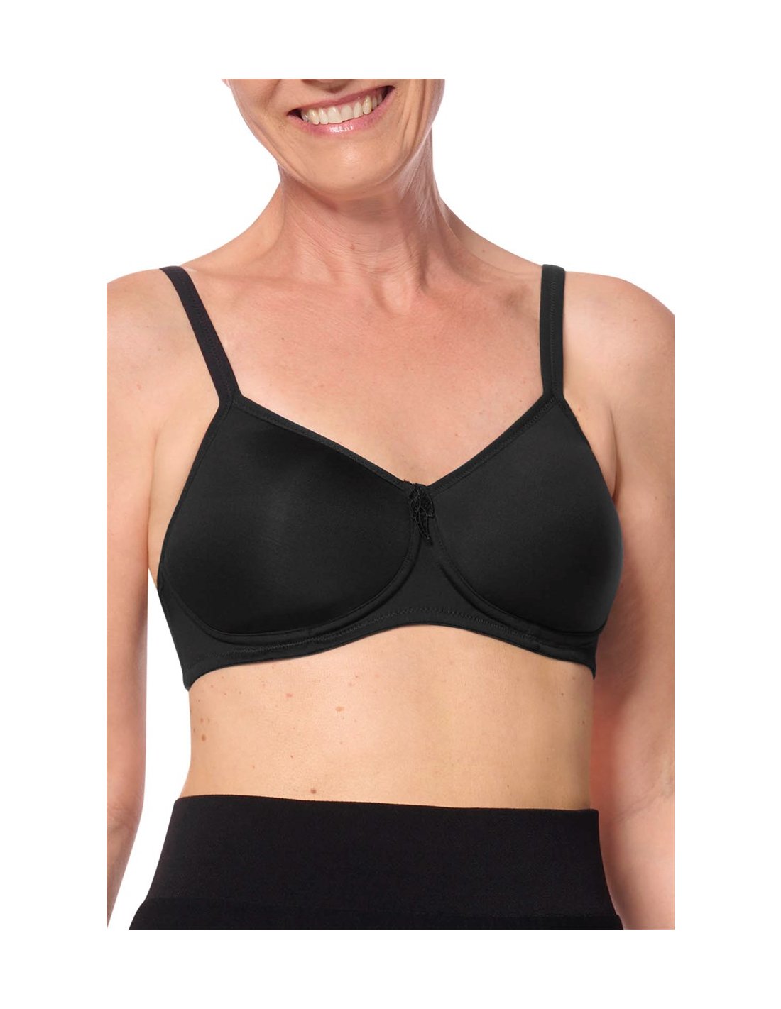 Sujetador Lara especial para mastectomía, con copas preformadas y acolchadas, sin aros, ideal para uso diario. Incluye bolsillos bilaterales internos para colocar las prótesis. Tirantes elásticos y regulables, cierre trasero mediante corchetes.