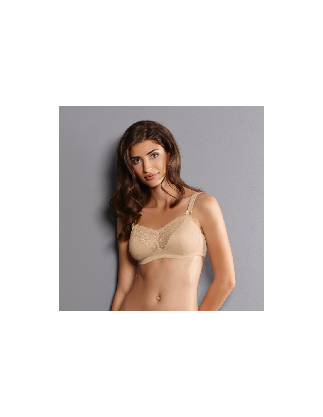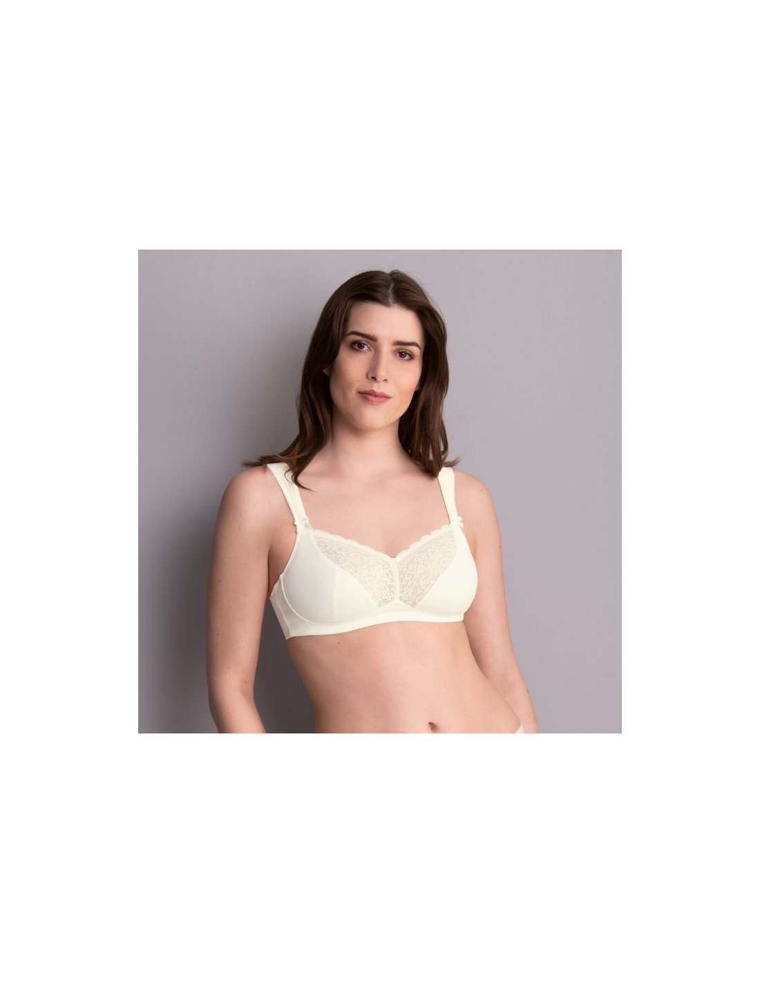 Sujetador protésico. Parte interior de la funda de algodón y parte superior de tul transparente. Pretina de refuerzo adicional en tallas superiores y tirantes de espuma blanda ideal para un máximo confort.