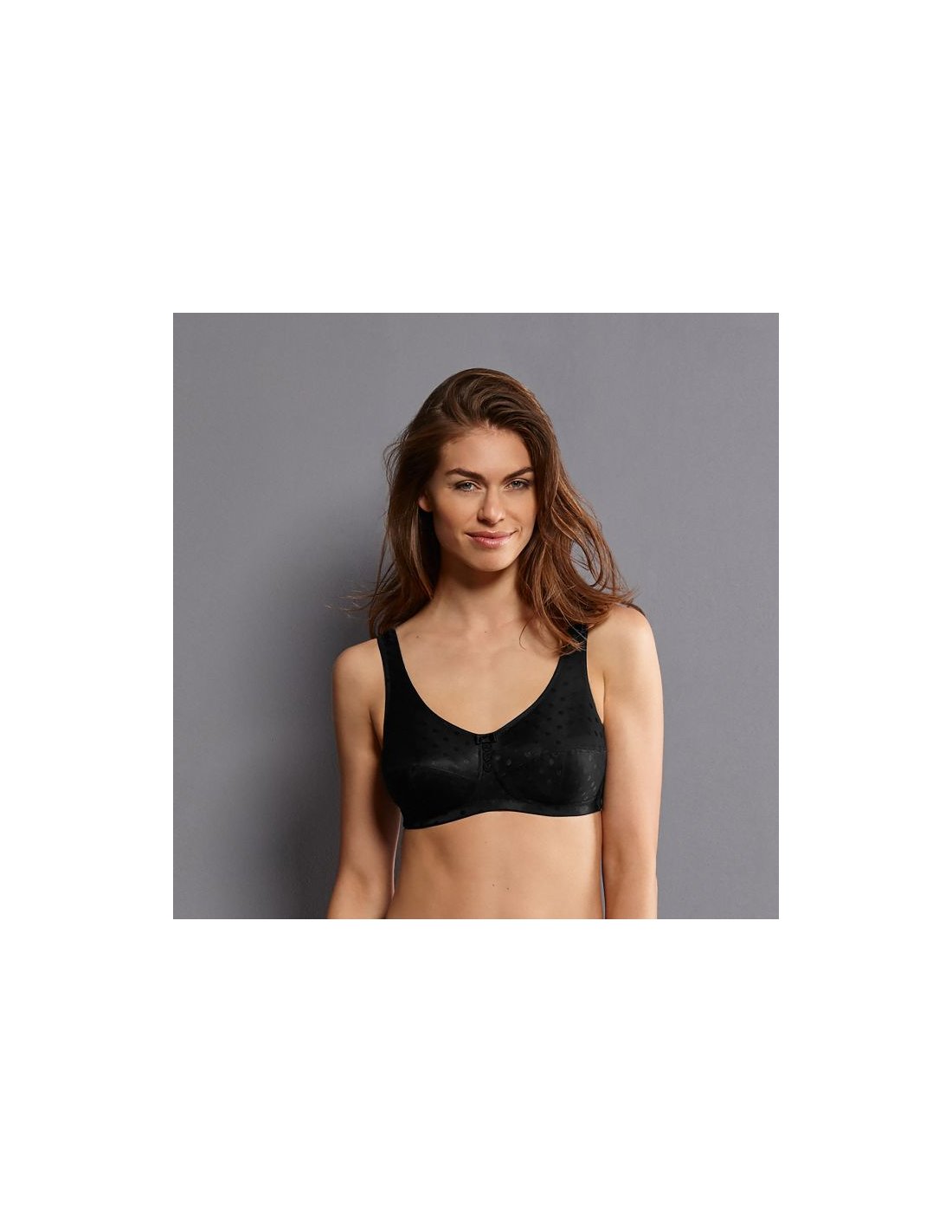 Sujetador protésico, bolsillos para prótesis en ambos lados en suave tejido de tul elástico. Copas divididas en tres. Tirantes confort decorados con finas cintas bordadas. Espalda en tejido resistente y transpirable.