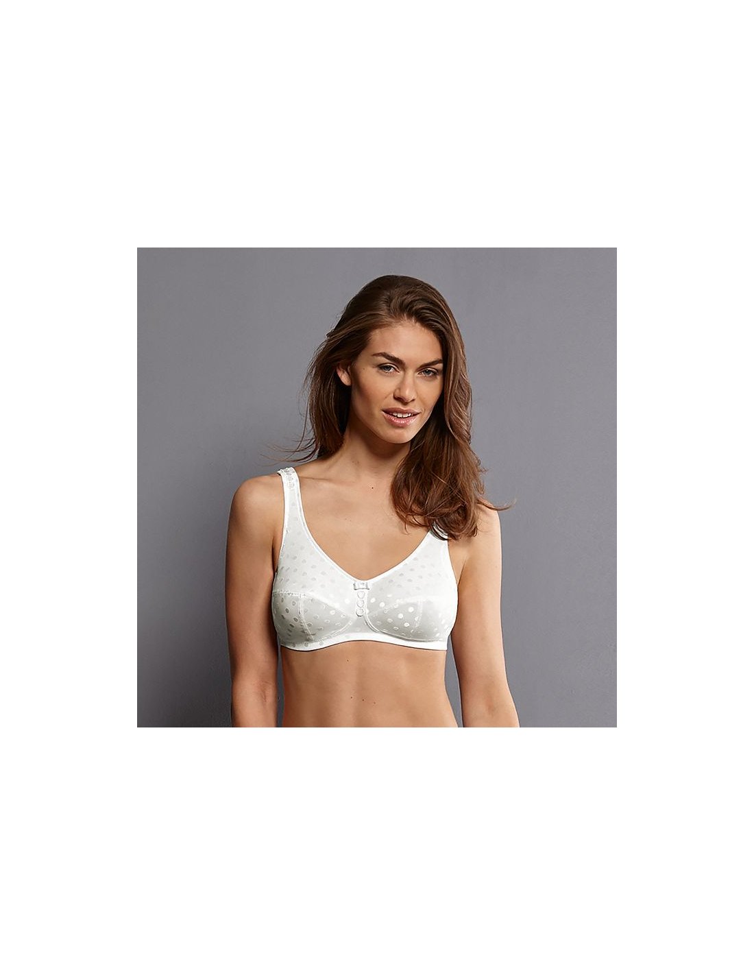 Sujetador protésico, con fundas de tejido agradable de algodón, copas divididas en tres partes forradas con un tejido suave y opaco. Encaje floral plano y suave, con un dibujo integral de cuadros. Cierre regulable en 4 posiciones para una optima sensación de confort