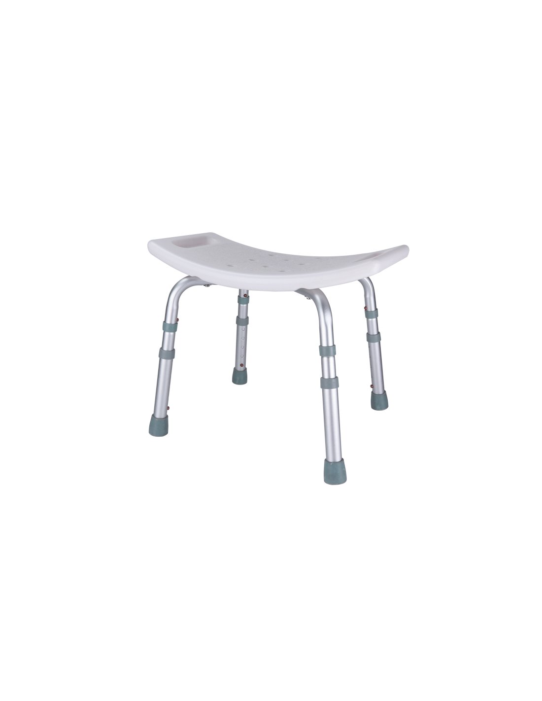 Taburete de baño sin respaldo, regulable en altura, diseñado para ofrecer estabilidad, comodidad y seguridad durante el uso diario en la ducha o el baño.