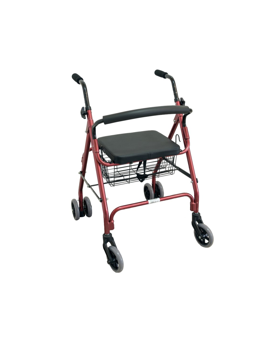 Andador con ruedas tipo rollator, fabricado con estructura metálica resistente. Incorpora asiento acolchado, cesta portaobjetos y frenos de seguridad. Cuenta con manetas regulables para un agarre cómodo y seguro. Ideal para personas con movilidad reducida que buscan estabilidad y apoyo en su día a día.